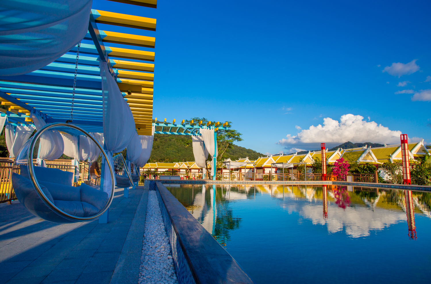 酒店建筑选用最讲究礼仪规制的亚洲宫廷风格,将中国皇宫的威严大气与东南亚皇宫的华丽精致相结合,以博大精深的六艺文化为精神内核,致力于为全球名流阶层提供高端社交度假体验。